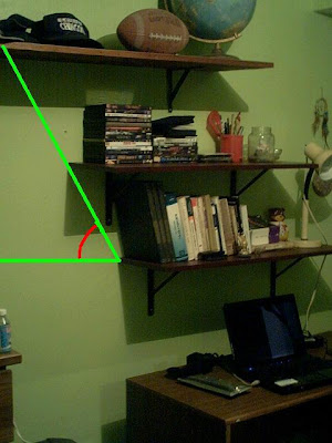 Necesitaba un lugar en donde poner mis libros, mis películas de acción, mi lámpara y algunas otras cosas indispensables que pudiese alcanzar con facilidad desde mi cama (usando mi órgano sexual como herramienta prensil); así es que, en vez de gastar en un aparatoso librero, opté por el pragmatismo de tres repisas austeras hecha de caoba que compré en el Home Ripoff.