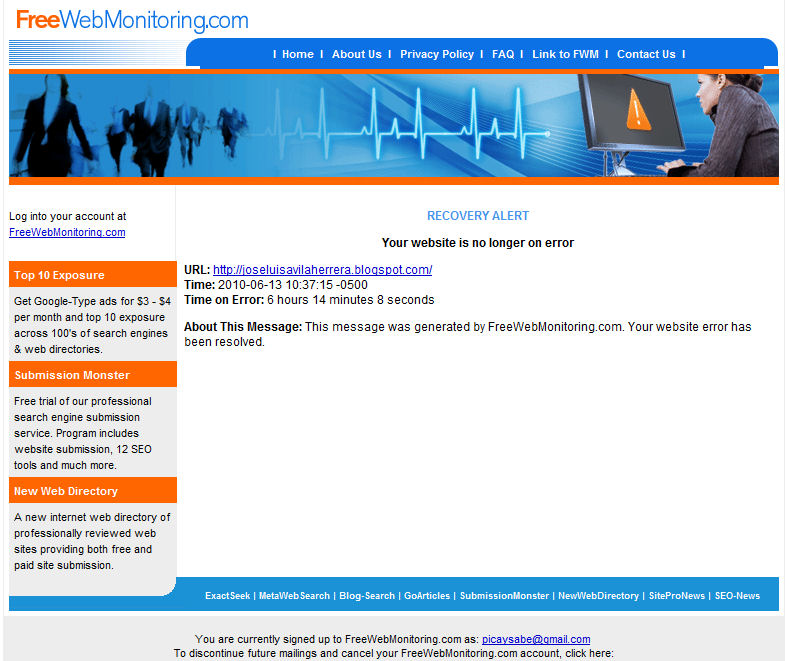 EN LA SIGUIENTE captura que me llegó al correo, se pueden apreciar los detalles de este aqtaque que duró 6 horas, 14 minutos y 8 segundos.
