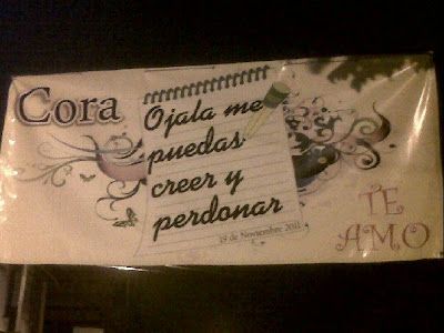 ¡N-nnnnnnnnnnnnnnnada qué! Mándalo a la mierda, Cora. La cagó al escribir "Ojalá", la cual lleva acento. Eso es imperdonable, y más si está escrito en una lona gigante y a la vista de miles de personas. Aparte, si realmente le crees, no le tienes nada que perdonar; porque al haber escrito "perdonar" fue una manera implícita de aceptar su culpa. Por ende dialético la cagó este vato. ¡Dos cagadas en el mismo día y en la misma lona!