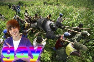 Niños buena onda como Justin Bieber habrían tomado la sana decisión de llevar al gorila a casa en lugar de dejarle en paz, borracho y vomitado en el monte…