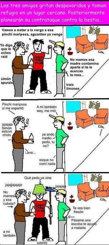 Al ir subiendo los escalones, iba esquivando las gotas que caían de los árboles, bieeeen cabrón y al mismo tiempo hacía sonidos de efectos especiales con la boca: " fffff" cuando esquivaba "shhhffff" cuando saltaba. En eso, alzo la vista y ¡madres! Había un chingo de personas viéndome, no me había dado cuenta. Estaban afuera de la galería un montón de gente nice y bonita. Nooo mames! -dije- Se me quedaron viendo unas chavas bien guapas y se empezaron a cagar de la risa. Y yo -aala verga qué pena- Seguro por su mente pasó alguna de estas cosas:
