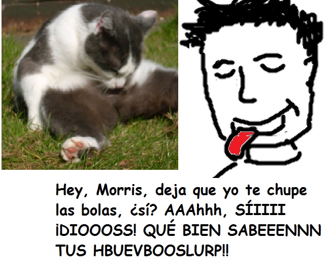 En el hipotético caso de que Morris ganara la elección él ya jamás tendría que lamerse las bolas, porque sus mismos fans ya lo hacen a cada momento. En serio. Estoy seguro de que los fans le lamen los huevos más que de lo que se las lame el mismo gato. En cada rincón de Facebook he visto alguien chupándole las bolas a Morris e incitando a votar por él, sin respeto por la opinión de otros.
